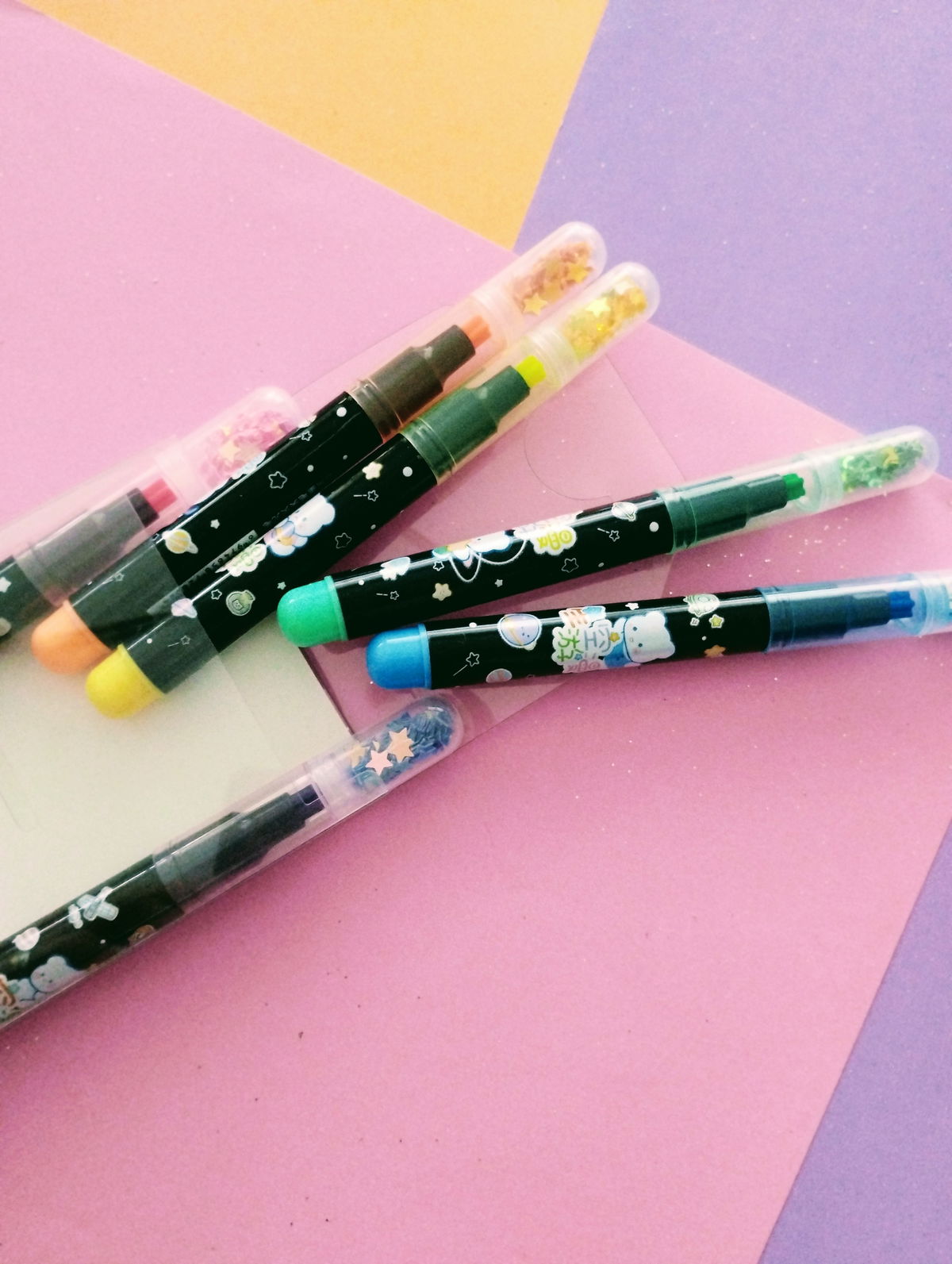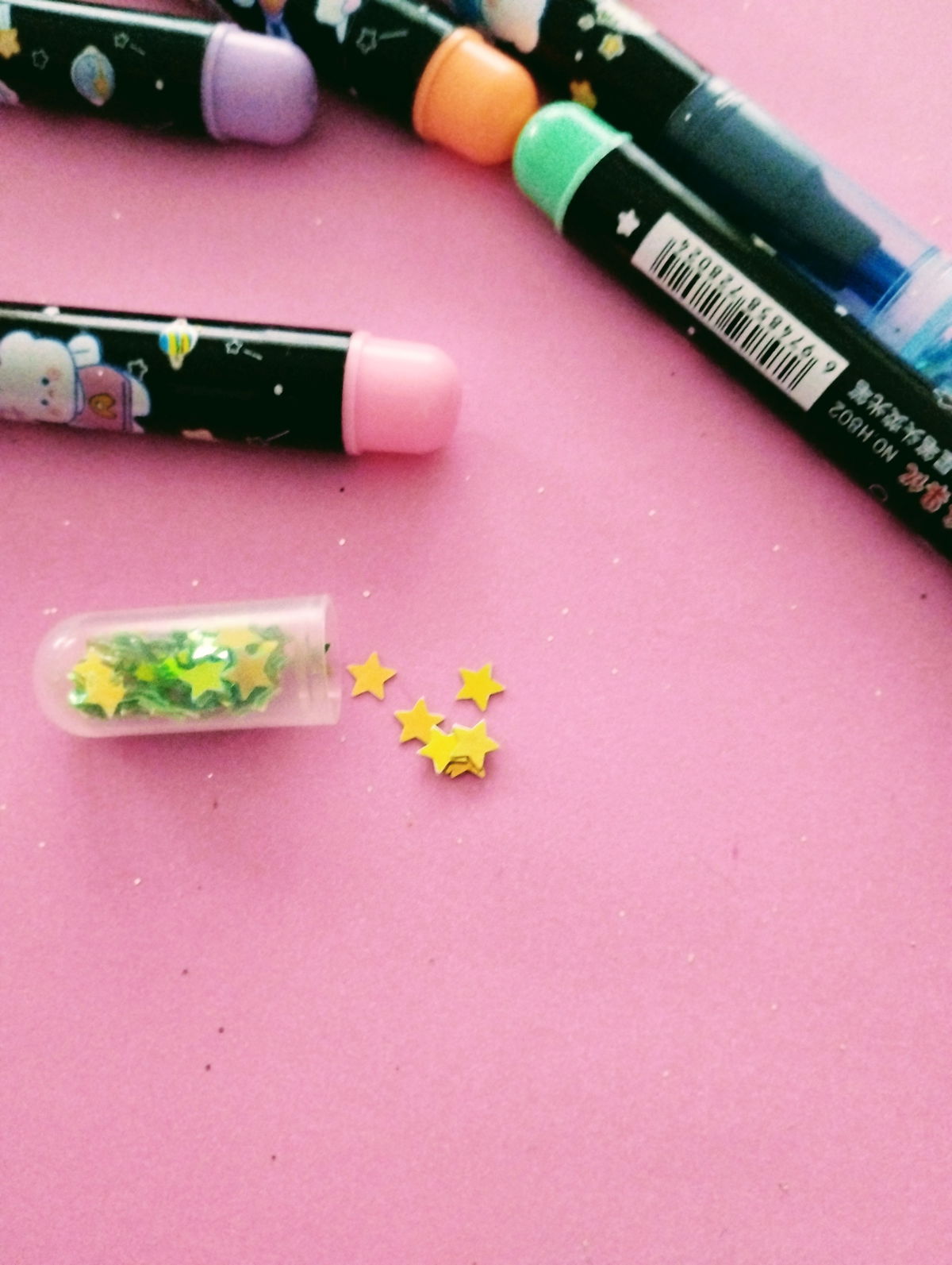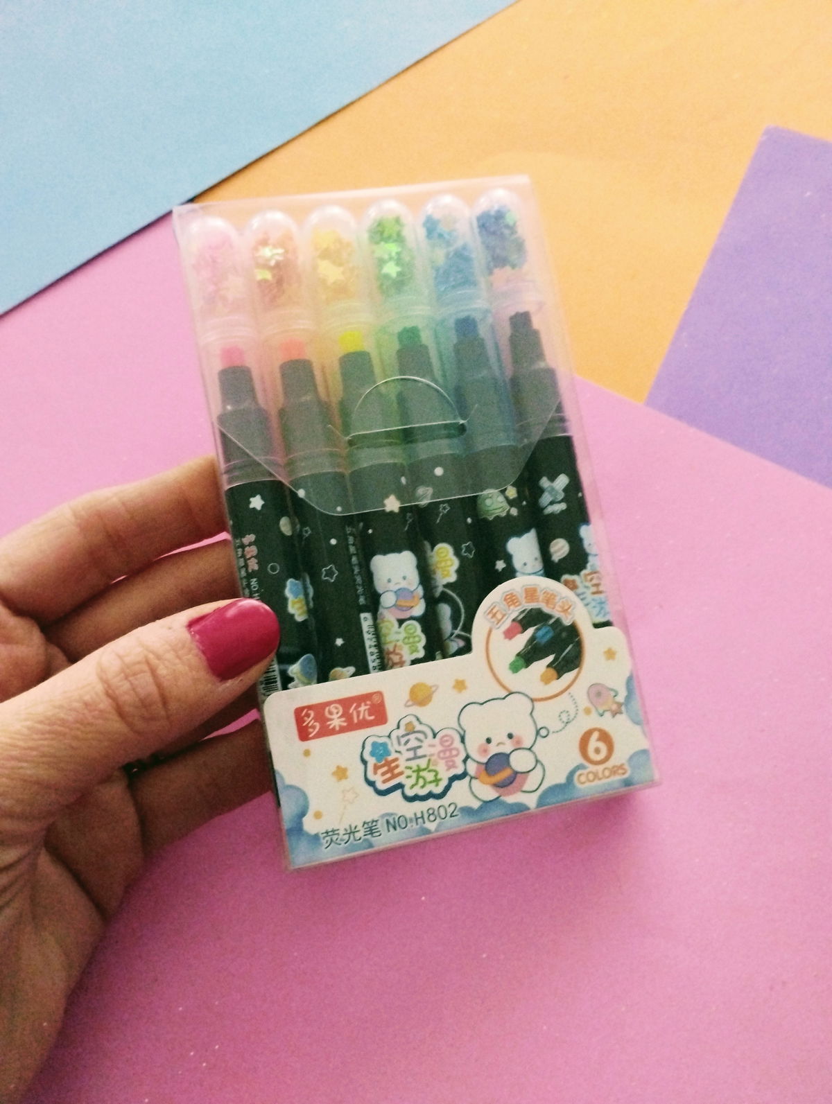 RESALTADORES FLUORESCENTES DE PUNTA ESTRELLA CON GLITTER X6