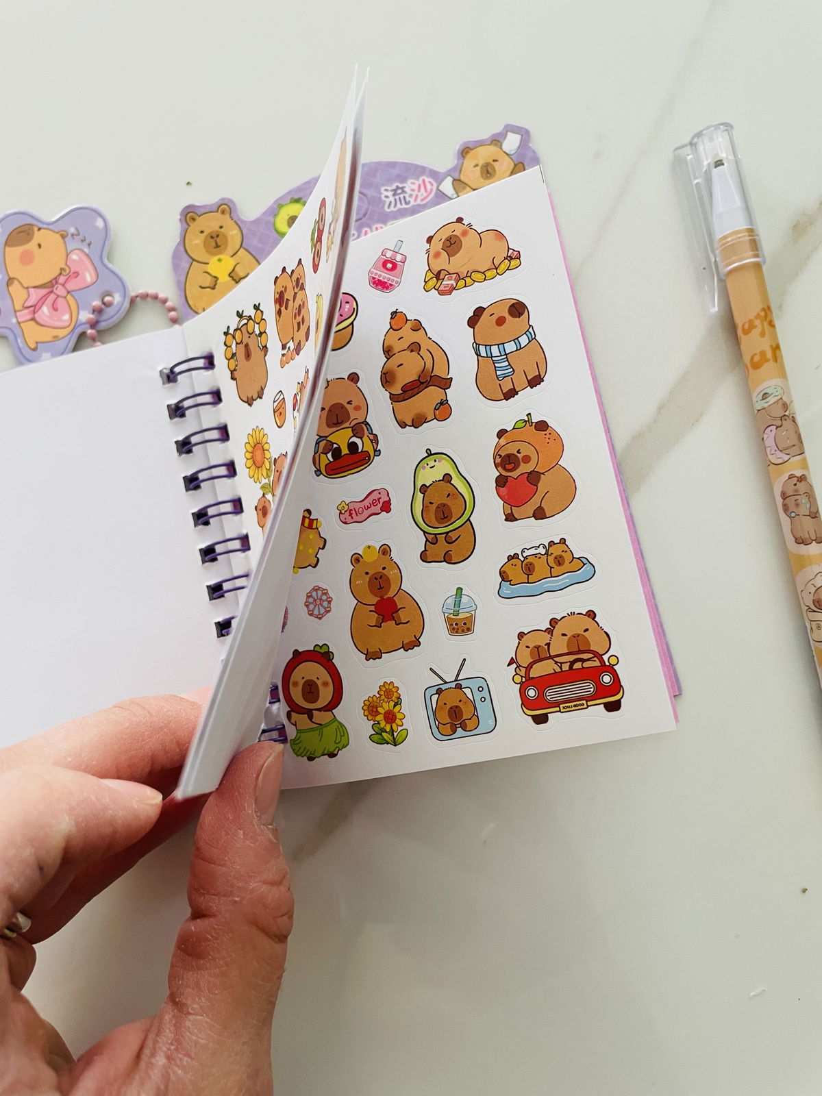 LIBRETA CAPIBARA GLITTER CON STICKERS