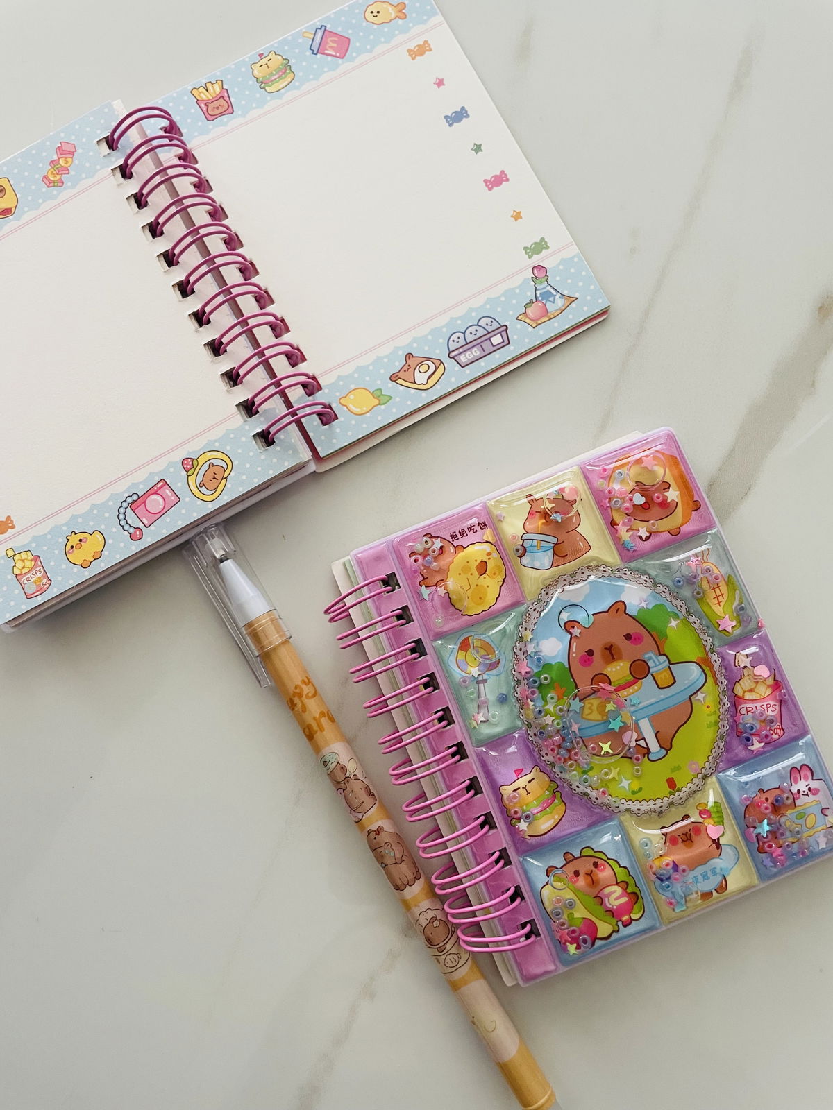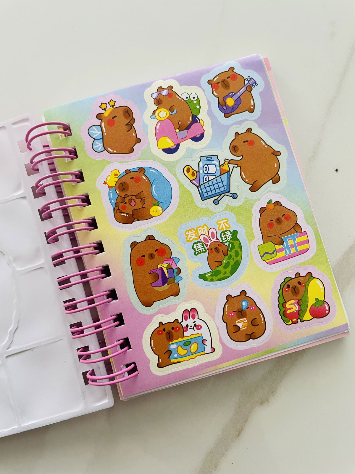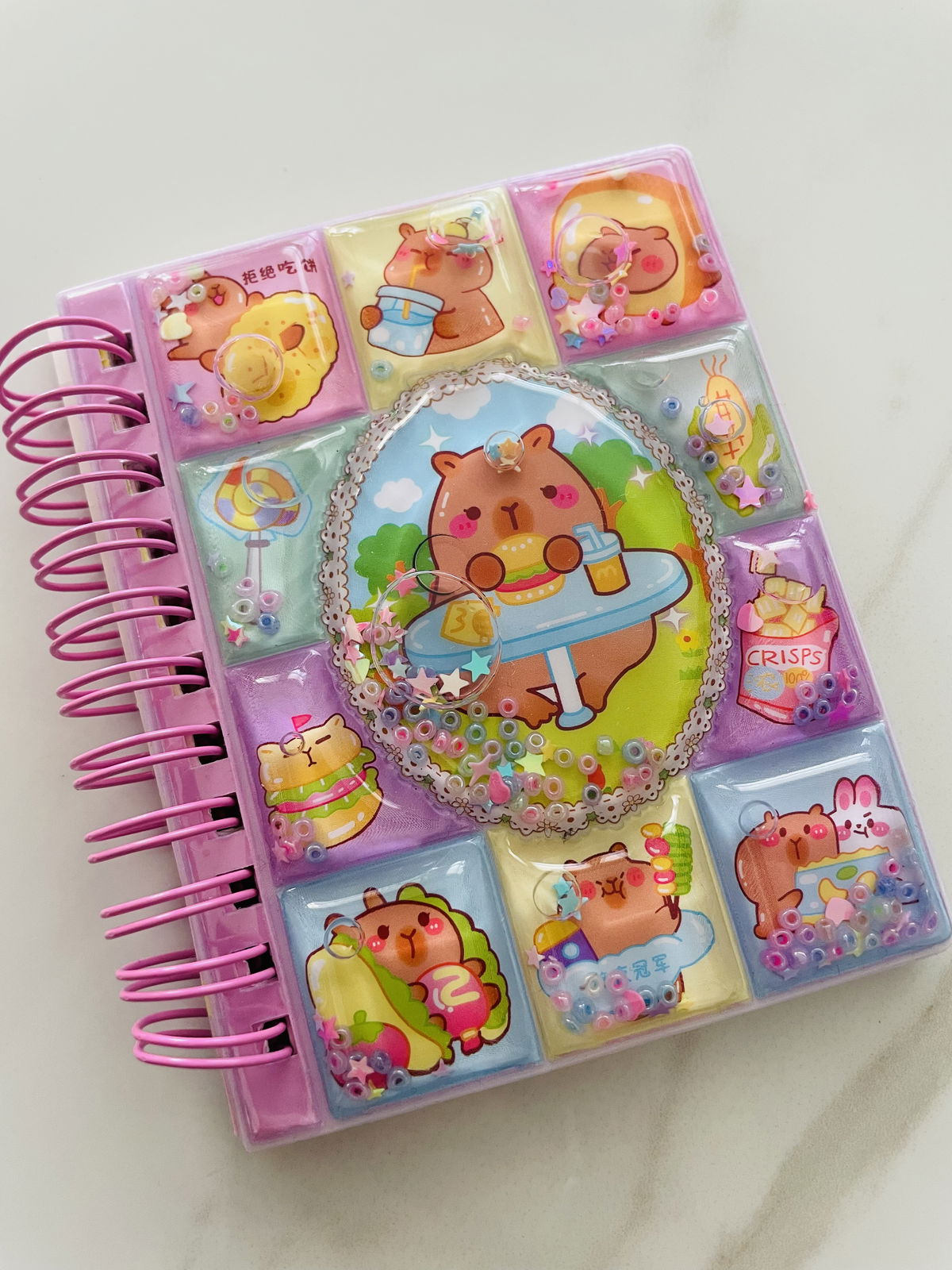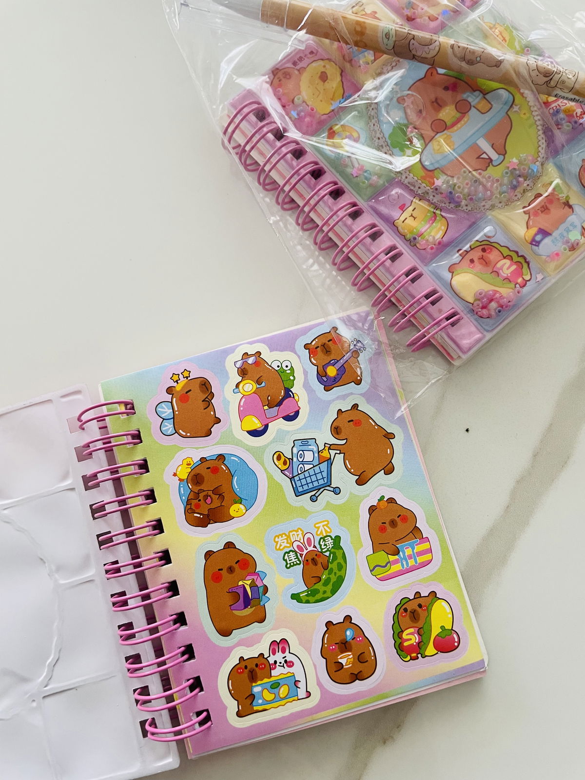 ANOTADOR CAPIBARA GLITTER CON STICKERS + BIROME