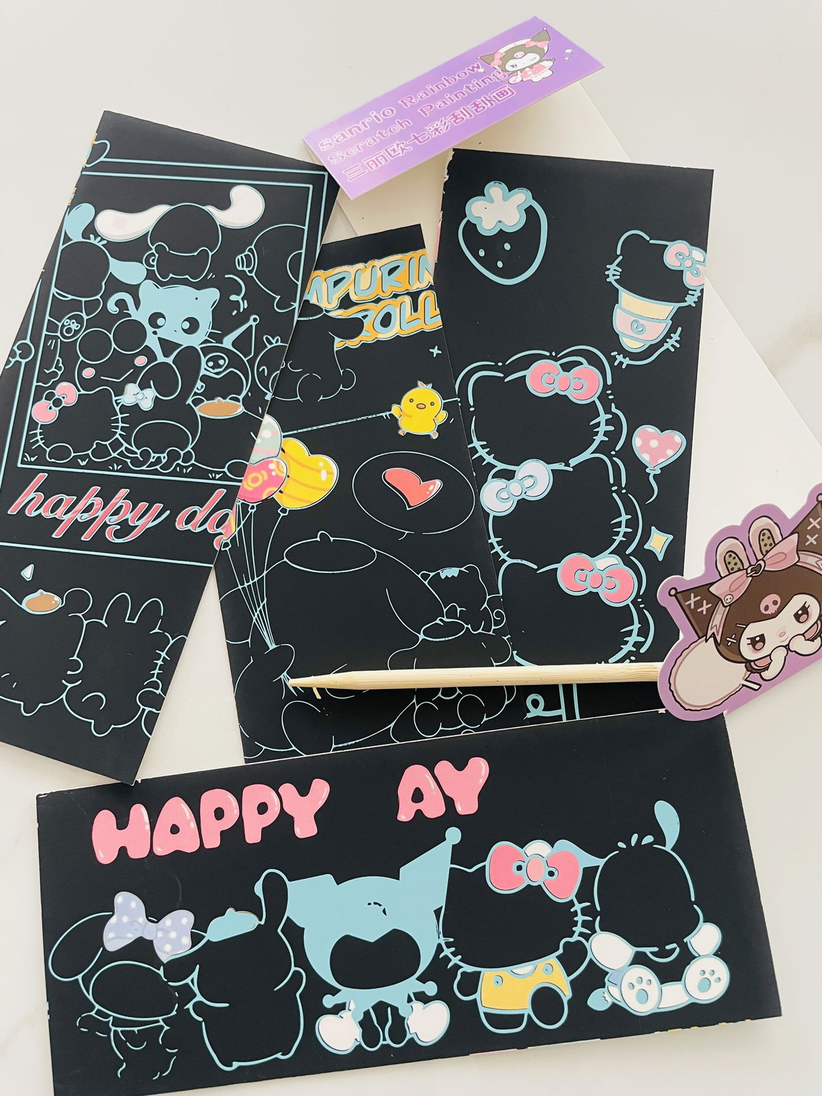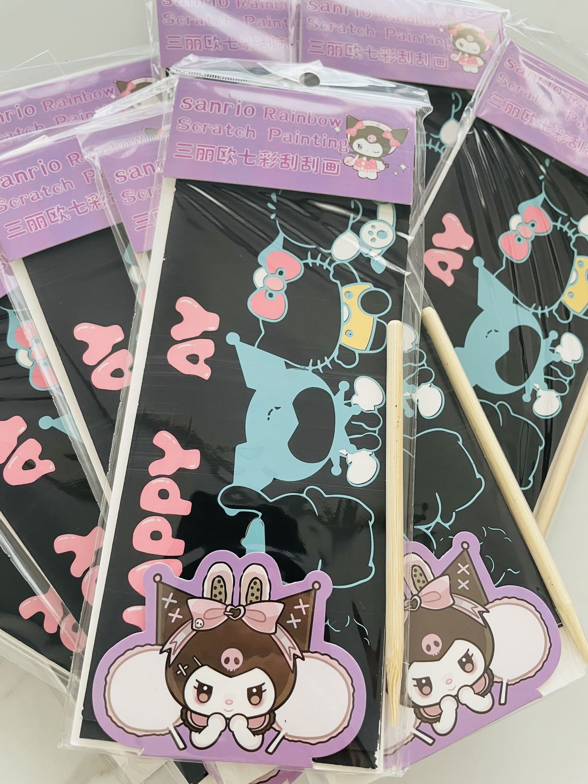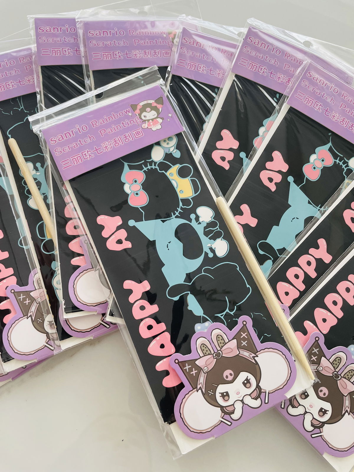 SCRATCHCARDS SANRIO + LÁPIZ DE MADERA EN BOLSITA INDIVIDUAL X10