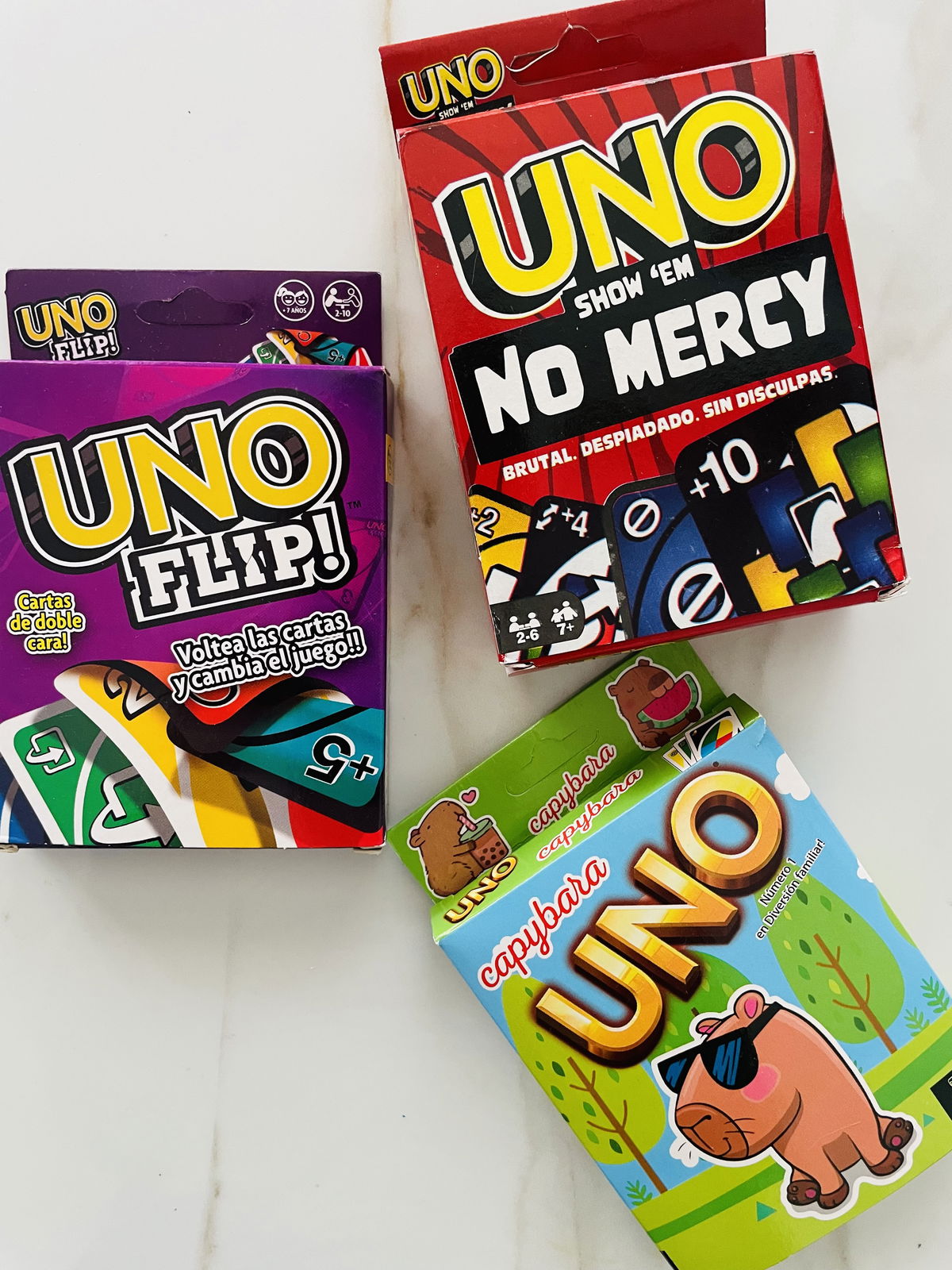 KIT CARTAS UNO FLIP + UNO NO MERCY + UNO CAPIBARA
