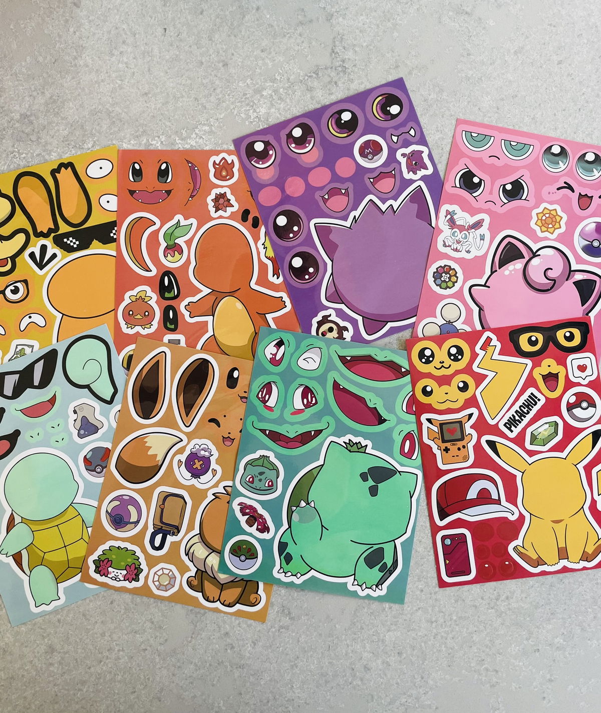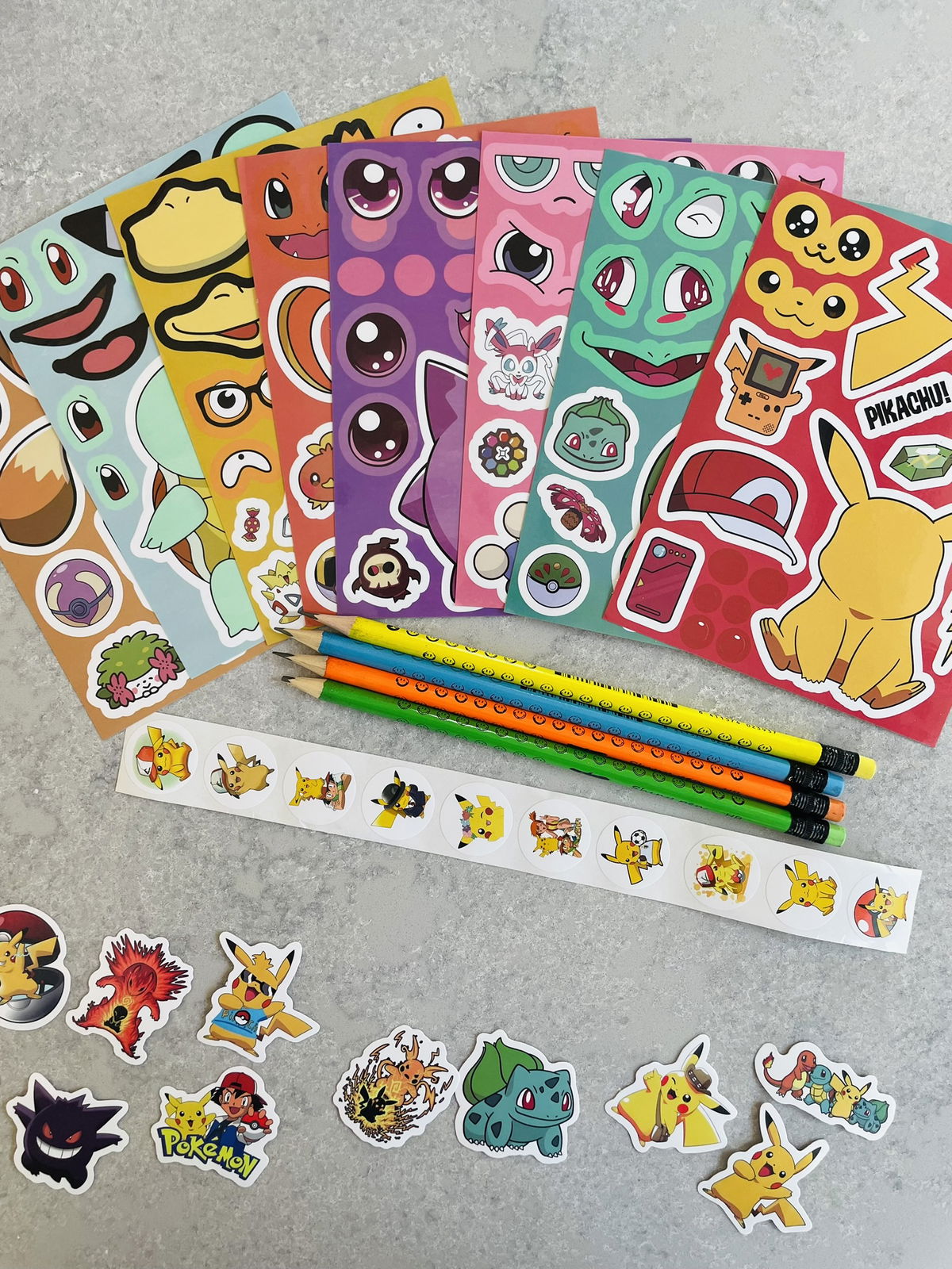 VINILOS PARA ARMAR POKEMON + TIRA DE STICKERS + 1 LAPIZ EN BOLSITAS INDIVIDUALES X12