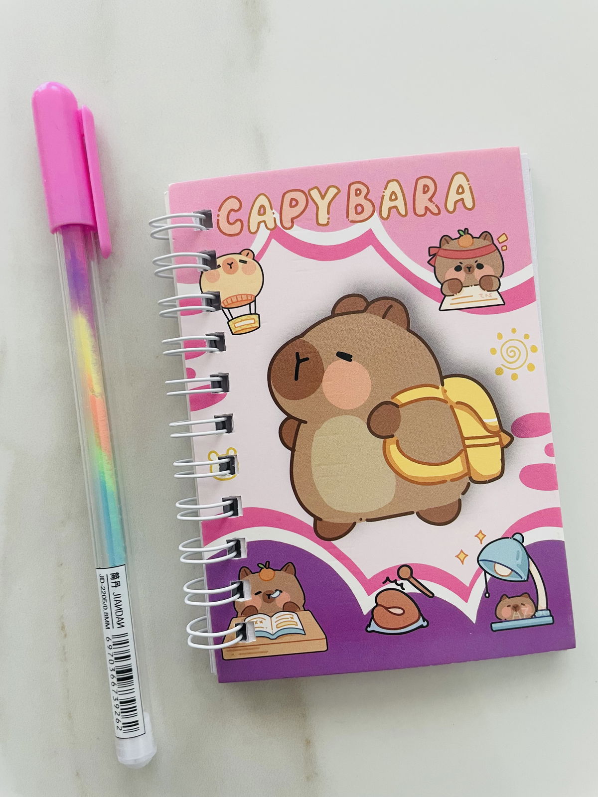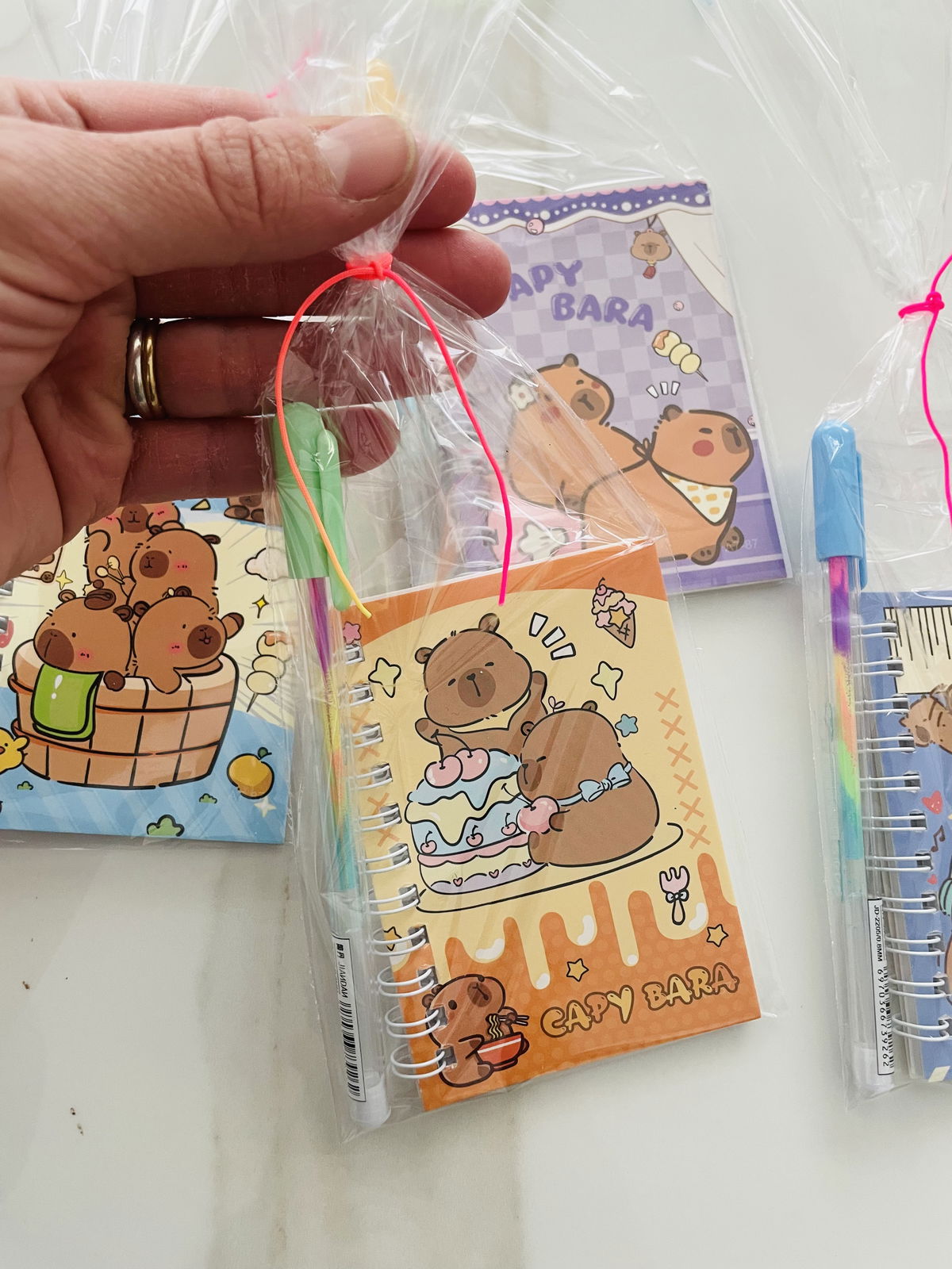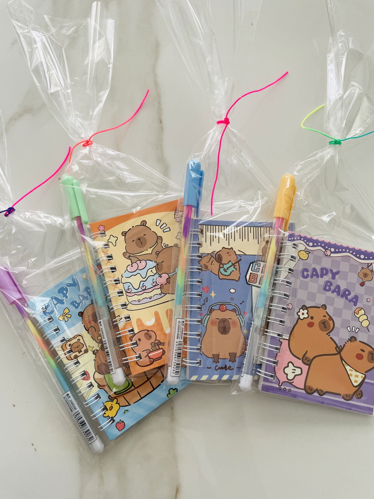 ANOTADOR CAPIBARA SURTIDO + BIROME ARCOÍRIS EN BOLSITAS INDIVIDUALES X10