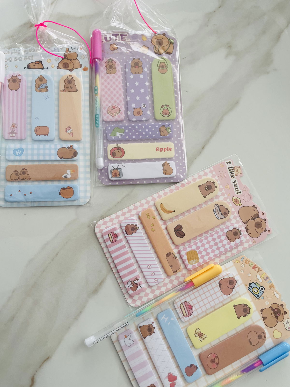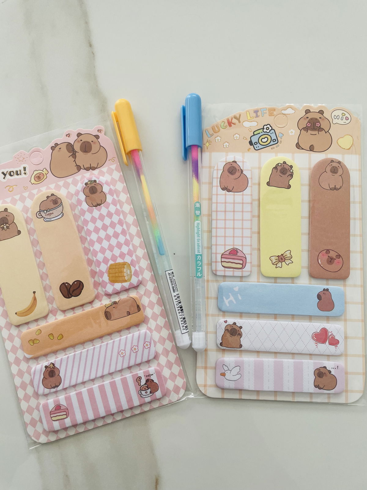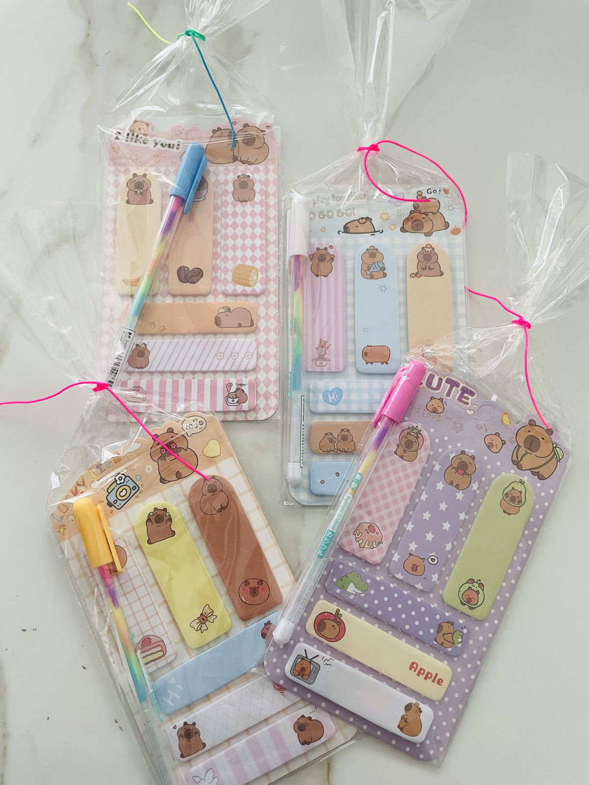 STICKYNOTE CAPIBARA SURTIDO + BIROME ARCOÍRIS EN BOLSITAS INDIVIDUALES X10