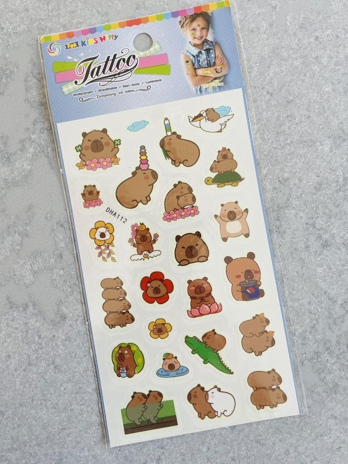 PLANCHA DE TATOOS FLUORESCENTES GRANDE CAPIBARA