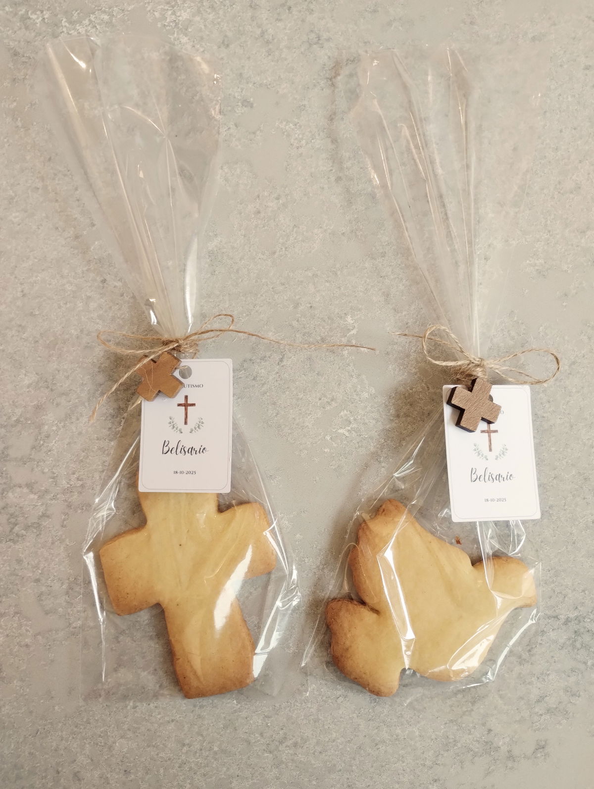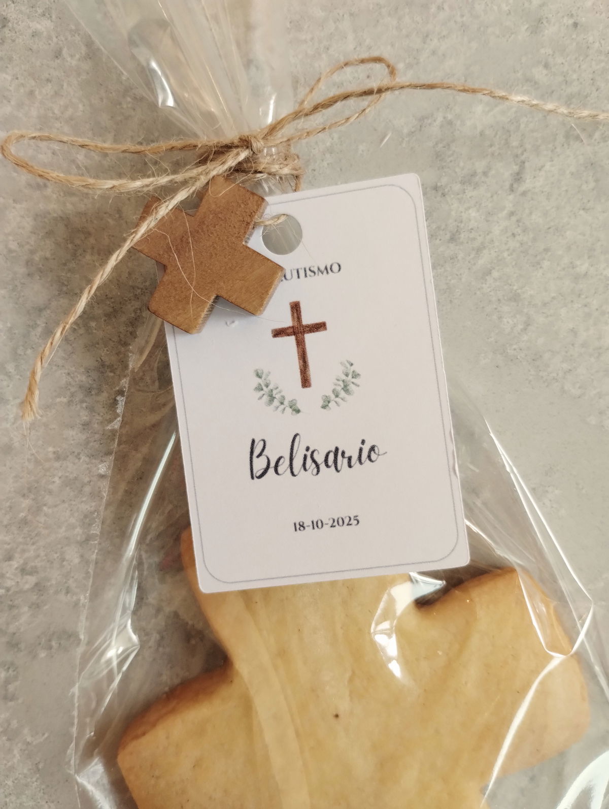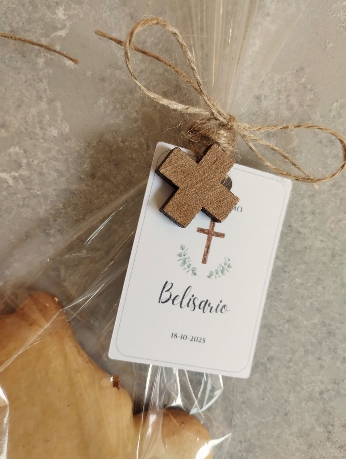 SOUVENIR COOKIE VAINILLA + CRUZ DE MADERA CON HILO SISAL + TAG EN BOLSITA INDIVIDUAL X20