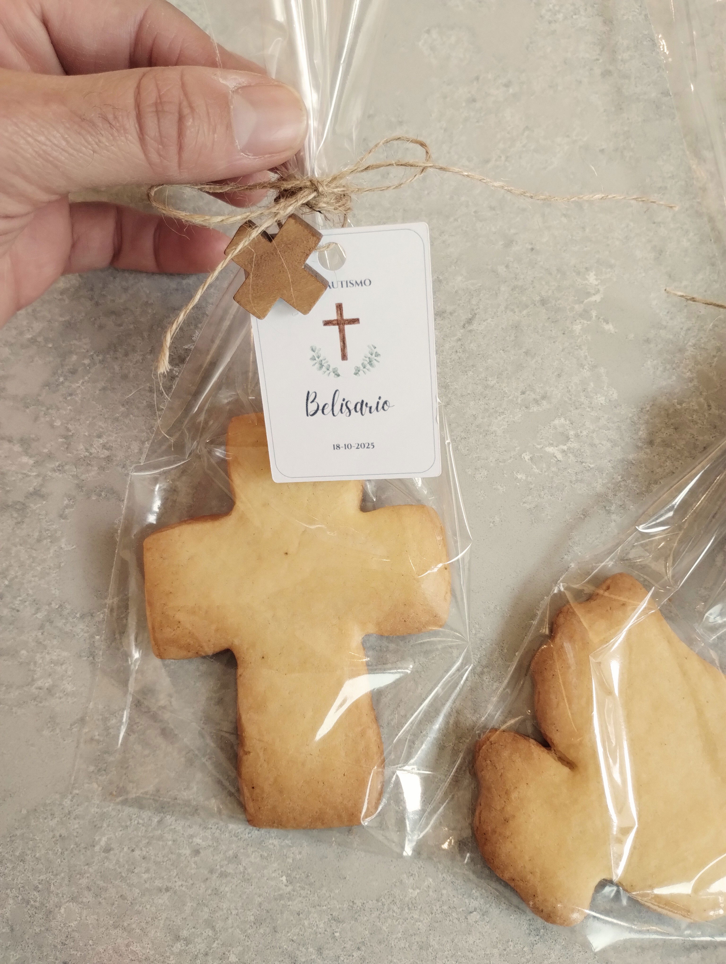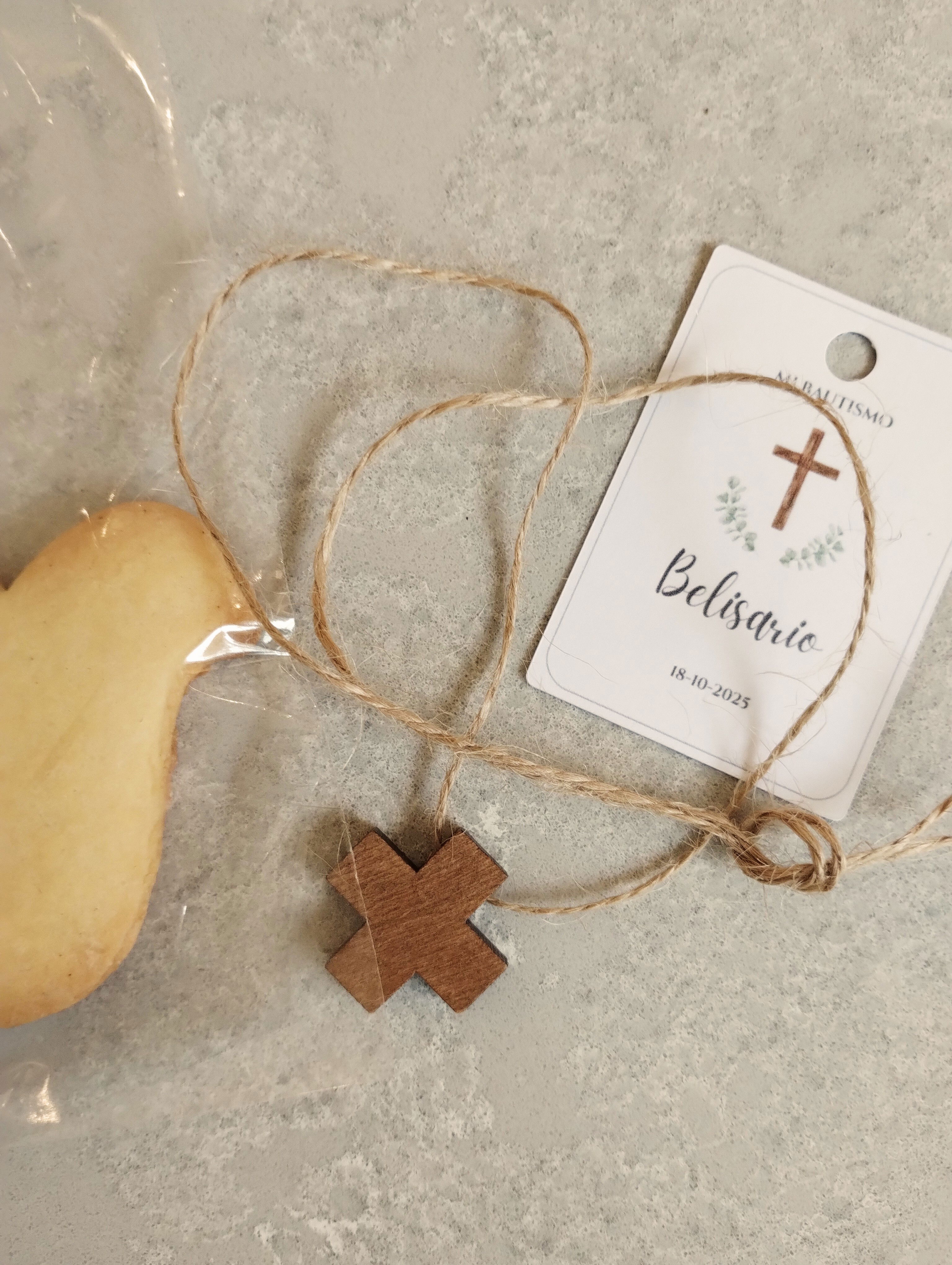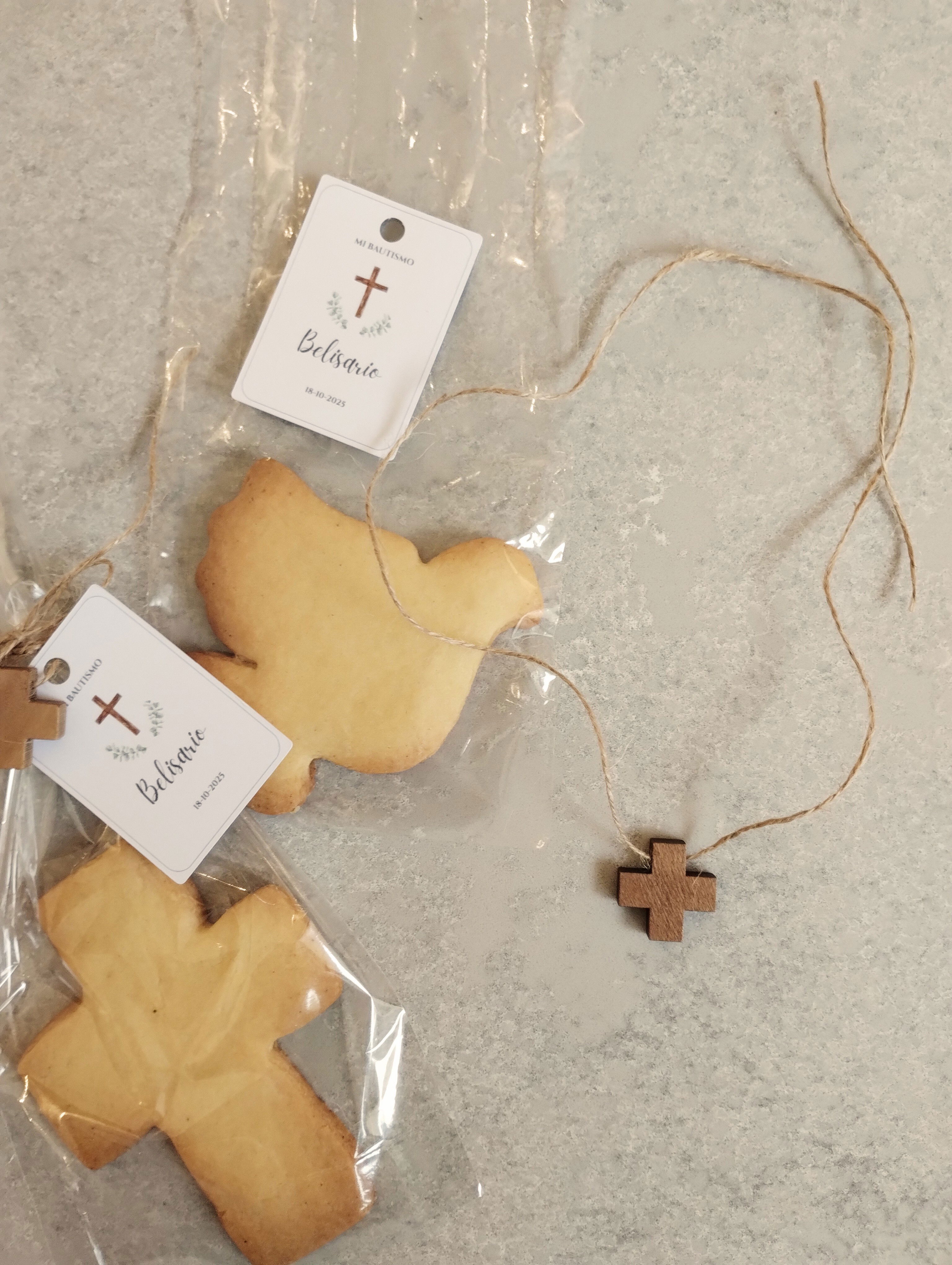 SOUVENIR COOKIE VAINILLA + CRUZ DE MADERA CON HILO SISAL + TAG EN BOLSITA INDIVIDUAL X20