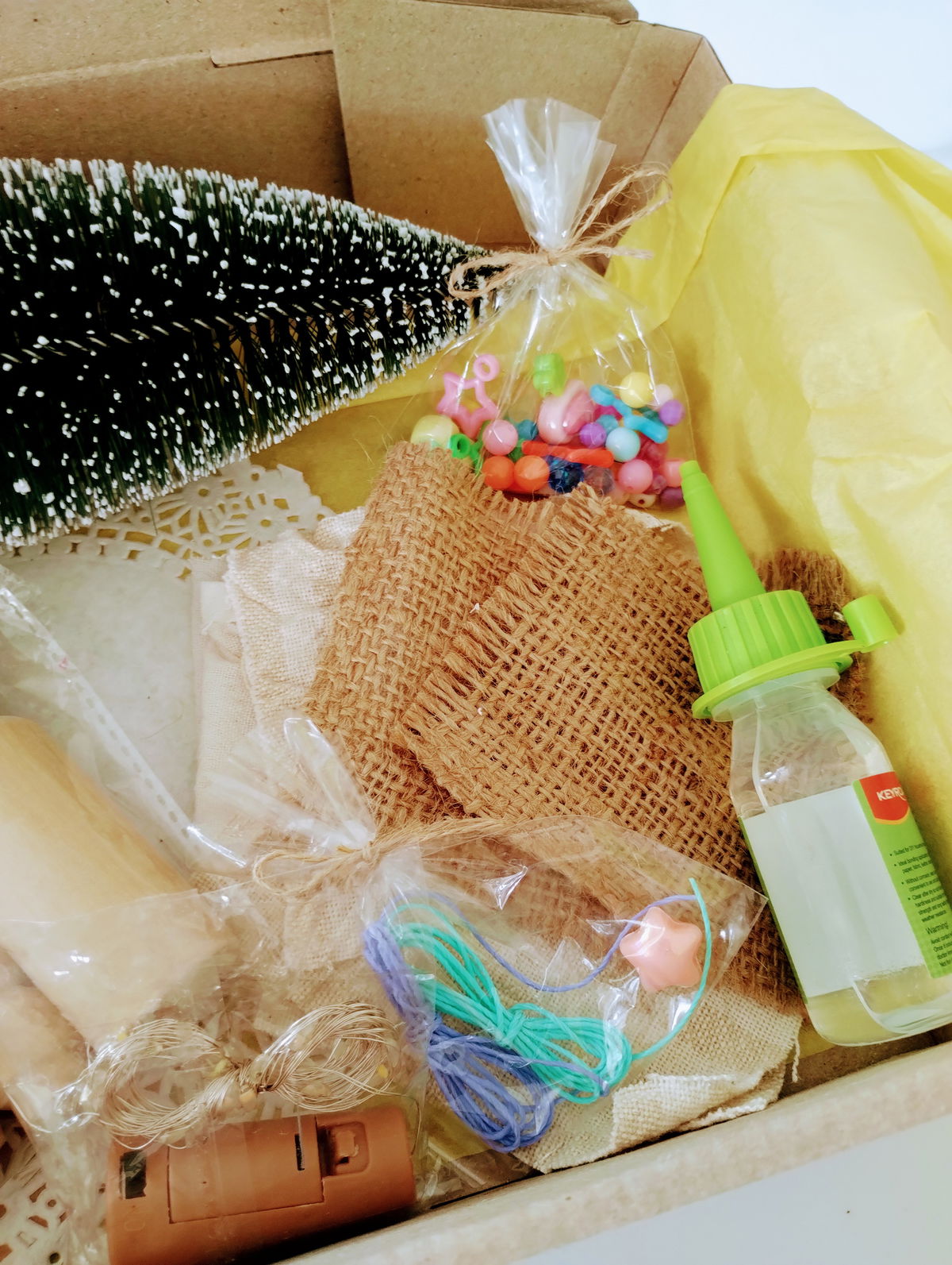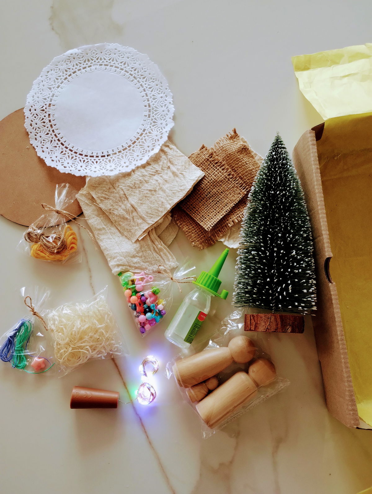 ✨ Guirnalda de luces, hilos, mostacillas de colores y una estrellita para decorar el arbolito